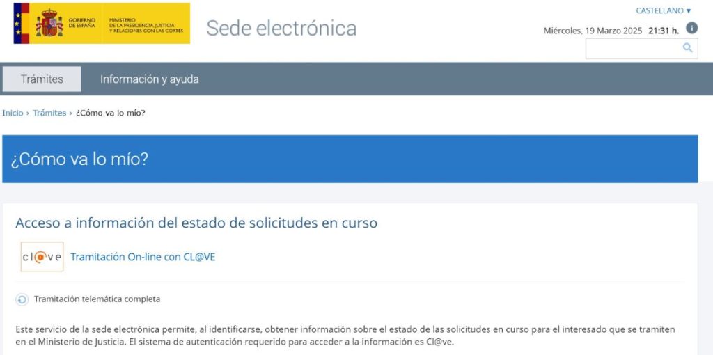El Ministerio de Justicia tiene un servicio que se llama justamente así: ¿Cómo va lo mío? Es un portal web donde las personas que están solicitando la nacionalidad española pueden revisar el estado de su trámite.