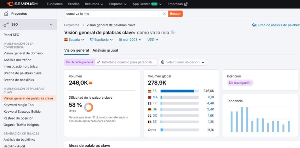 Según los datos que proporciona Semrush en Español, en España 246.000 usuarios al mes buscan en Google «cómo va lo mío».